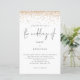 Budget Gold Glitter Confetti Script Wedding Invitation. A LARGER size 5.5” x 8.5” at a budget price, on a SEMI GLOSS 110 lb CARD STOCK, great for invitations, at roughly the same thickness as a postcard, or an elegant 110 lb LINEN stock – for a luxury, slightly thinner feel at great value. PLEASE NOTE THE OPTIONAL ENVELOPES ARE A LITTLE BIGGER IN SIZE AT 6.75” x 9” approx. This budget size alternative is also available in other paper choices. The FELT 100 lbs paper is buff colored, NOT white, so adds a rustic touch. The MATTE 80lbs paper stock is bright white, for crisp printing, great for your menus and programs, whilst the SATIN 80lbs paper is thin and light, ideal for enclosures A stylish set typography in black for the main heading the Wedding Of complementing the rest of the text which you can easily personalise. A gold faux glitter border runs across the top on each side.