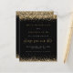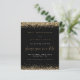 Gold Glitter Borders Script Wedding Black Save The Date. A budget price SMALLER 4.5” x 5.6” alternative. Available in a SEMI GLOSS 110 lb CARD STOCK which is the default option (recommended for invitations), OR a SATIN FINISH 80 lb THINNER PAPER STOCK (ideal for enclosures). Envelopes are an optional extra and are slightly larger than the card size. Gold faux glitter borders the top and bottom edges and an elegant set script for Save Our Date. Easily personalise the rest of the text to your details.