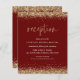 A value for money BUDGET alternative on a smaller size 4.5 x 5.6” semi-gloss 110lbs weight, which is of similar thickness to a postcard (however is not suitable to use as a postcard.). PLEASE NOTE there is ONE invite per sheet. Budget Gold Glitter Wedding Reception Burgundy Enclosure. A modern set script for the heading and the rest of the text you can easily personalise, wth faux glitter borders at the top and bottom edges on both sides in gold.