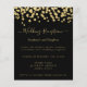 Budget Gold Glitter Confetti on Black Background Wedding Reception Invitation. A value for money smaller 4.5 x 5.6 inch alternative defaulted to the semi gloss option which is recommended for invitations and is a similar thickness to a postcard. The satin option is much thinner.