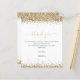 Budget Gold Glitter White 2024 Graduation Thank You. A budget price smaller (4.5 x 5.6”) semi-gloss which is a 110 gsm card stock, similar in thickness to a postcard. NOTE there is ONE per sheet.. Elegant gold faux glitter confetti borders are at the top and bottom and also on the back. Easily personalise the text to your own.