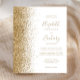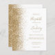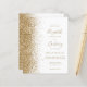 The left-hand edge of this elegant modern wedding invitation features a gold faux glitter border. The customizable text combines gold-colored handwriting, copperplate and italic fonts on a white background. The reverse side features a matching white and gold glitter design. NOTE: Envelopes are not automatically included with these budget invitations, so please remember to choose the "blank white envelopes" option!