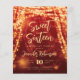 Elegant Sweet Sixteen Birthday Party invitation template w/ Gold & Red Sparkle String Lights motif & modern typography script.