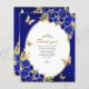Floral Royal Blue Gold Butterfly Quinceañera Photo Thank You Card