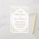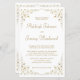 This elegant vintage-inspired formal wedding invitation features the text in gold colored script and serif fonts, framed by a delicate vintage gold vine motif. The frame is repeated on the reverse.