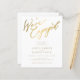 Simple minimal chic whimsical faux gold calligraphy clear white we're engaged script BUDGET AFFORDABLE engagement party invitation.