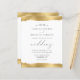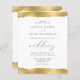 This elegant wedding invitation features a gold faux foil torn edge design at the top and bottom borders. The word "wedding" appears in calligraphic script. Customize the charcoal gray text with the names of the bride and groom and the wedding details. The gold edge design is repeated on the reverse.