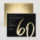 Budget Gold Type Modern 60th birthday party invitation features stylish faux gold foil number handwritten script 60 and your party details in classic serif font on black background color, simple and elegant, great surprise adult milestone birthday invitation for men and women. The black background color can be changed to any color of your choice.