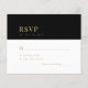 Elegant minimal bold typography classic black and gold wedding invitation rsvp card with a dark moody classy look. +++++++ Suitable for any season formal wedding ceremonies and receptions. ++++++++++ PLEASE READ THIS BEFORE PURCHASING! This is a budget affordable wedding card printed on a paper sheet (each sheet has one card). ++++ For the best rapport price-quality, our advice is to choose the Semi-Gloss paper type (it is thick enough to be used for stationery) ++++ If you need envelopes, choose the ENVELOPE OPTION. +++ Double-check all the information and spelling of your text because you will receive exactly what you see - no one else will check anything before printing. ++++ This card is designed for size 4.5" x 5.6". In the case you choose another size of the card and text goes outside page, everything needs to be fixed before adding the product to cart. Please ask Live Design Service for help.