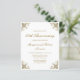 This elegant vintage-inspired 50th wedding anniversary invitation features the text in gold-colored script and serif fonts, framed by ornate decorative gold motifs in all four corners. The corner motifs are repeated on the reverse.