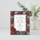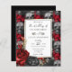 Gothic Red, Gold, Black Floral Wedding Invitations. Faux gold Floral Leaves. Script font highlights with easy to read serif name font. Easy to adjust for your own wedding needs. Skull patterned background
