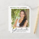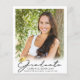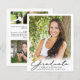 Announce your high school or college graduate's achievement with this budget-friendly alternative announcement printed on 4.5x5.6-inch lightweight paper instead of cardstock and featuring 5 photos (1 on the front and 4 on the back) and a modern, elegant handwritten script typography GRADUATE title design in black with a faux metallic gold foil graduation cap or mortarboard accent. The back is designed to include information about your graduate's achievements, activities and future plans as desired. Ideal for conservative budgets and/or hand delivering. ASSISTANCE: For help with design modification or personalization, color change or transferring the design to another product, contact the designer BEFORE ORDERING via the Zazzle Chat MESSAGE tab or email makeitaboutyoustore@gmail.com.