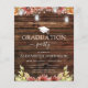 Budget Rustic Country Outdoors on Dark Wood with Burgundy, Orange and Yellow Sunflowers with Mason Jars on String Light Autumn or Fall Class of 2022 High School or College Graduation Party Invitations - includes beautiful and elegant script typography for the special Birthday Celebration.