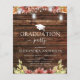 Budget Rustic Country Outdoors on Dark Wood with Burgundy, Orange and Yellow Sunflowers with Mason Jars on String Light Autumn or Fall Class of 2023 High School or College Graduation Party Invitations - includes beautiful and elegant script typography for the special Birthday Celebration.
