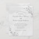 On a gray watercolor background, this has delicate line art drawing of leaves and flowers. The fonts have been selected to look stylish yet easy to read, which your guests will appreciate. Personalize with the names, wedding and reception details.