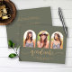 Budget Boho Arch Minimalist Green Gold Photo Graduation Announcement Invitation featuring 3 of your favorite photos and our stunning chic boho typography and geometric arch in dusty sage green and saffron yellow gold. Perfect for announcing your graduation and party! **Our BUDGET paper is smaller and more delicate, but still beautiful!** If you need assistance or matching items, please contact us at cedarandstring@gmail.com.