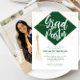 Modern GRAD Hat Cap Green Gold Photo Graduation Party Invitation