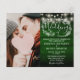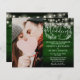 Featuring pretty string lights and a hand-drawn floral garland, this elegant budget rustic kraft wedding invitation can be personalized with your special photo and information set in chic lettering on an emerald green wood panels background. Designed by Thisisnotme©