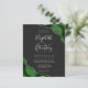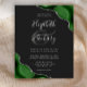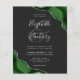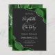 A hunter green watercolor agate design trimmed with faux silver glitter appears in two corners of this elegant design. Personalize it with the couple's names in silver gray handwriting script over a large gray ampersand. Add the wedding details in silver gray copperplate and italic fonts on a slate black background. The reverse side features a matching green and silver agate design.