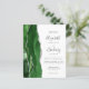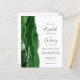 The left-hand edge of this elegant modern wedding invitation features a hunter green watercolor agate border trimmed with faux silver glitter. The customizable text combines handwriting, copperplate and italic fonts in charcoal gray on a white background. The reverse side provides space for wedding details on a solid white background, along with a QR code guests can scan to visit your website and RSVP, which saves the cost of printing and mailing separate RSVP cards.