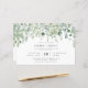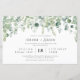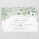 This Botanical Eucaliptus Greenery Budget Wedding Invitation - features lush greenery cascad of eucaliptus twigs, leaves on the pale white background with modern script text Serbian text. The reverse side of the bridal invitation is also white with eucaliptus leaves and details about wedding.