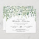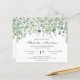 This Botanical Eucaliptus Greenery Budget Wedding Invitation - features lush greenery cascad of eucaliptus twigs, leaves on the pale white background with modern script text. The reverse side of the bridal invitation is also white with eucaliptus leaves and details about wedding.