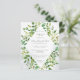 Elegant modern funeral invitation features a green and gray geometric botanical frame. A soft gray watercolor wash gives it a quite and dignified air. The deceased person's name is written in a traditional script text. All of the text can be easily edited to create a personal remembrance.