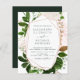 Budget Greenery Botanical and Rose Gold Geometric Watercolor Spring Wedding Invitations on White background - includes beautiful and elegant script typography with modern botanical leaves and greenery for the special Wedding day celebration.