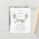 Elegant budget-friendly all-in-one wedding invitation featuring watercolors of sage green eucalyptus greenery, laurel leaves with gold accents, modern soft grey typography and your names in a stylish gold script. On the reverse side, upload your favorite engagement photo and input your wedding website address to create a QR code for your guests to scan to RSVP online and obtain additional wedding details such as directions and accommodations.
