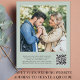 Elegant budget-friendly all-in-one wedding invitation featuring watercolors of sage green eucalyptus greenery, laurel leaves with gold accents, modern soft grey typography and your names in a stylish gold script. On the reverse side, add your photo and input your wedding website address to create a QR code for your guests to scan to RSVP online and obtain additional wedding details such as directions and accommodations. This budget semi-gloss paper is similar in weight to photo paper. A larger 5x7 traditional card stock version is also available (message us for the link).