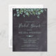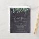 Invite your friends and family to your bridal shower with these rustic chalkboard slate with eucalyptus, elegant but casual bridal shower invitation postcards. These budget wedding invitation postcards need to be mailed as oversized postcards so may incur standard postage fees but they don't need an envelope or a return address label. Personalize with name, bridal shower date, location and any other info. Add website and any other information on the back. These unique greenery bridal shower invitations will make a lasting impression. COPYRIGHT © 2020 Judy Burrows, Black Dog Art - All Rights Reserved. Budget Rustic Greenery Bridal Shower Invitation
