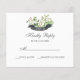 Designed to coordinate with our Greenery Arch Summer Spring Garden flowers wedding collection, this fresh botanical RSVP card features a branch of greenery and wild meadow foliage with a charcoal gray banner and an elegant combination of script and seri fnt topping your desired response date, custom accept and decline wording.