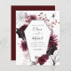 Halloween October 31st Autumn Fall Dark Watercolor Burgundy Wedding Invitations on Black background - includes haunting and scary elegant script typography with modern Flowers and Bat Wings for the special Creepy Wedding day celebration.