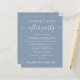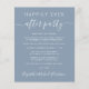 Budget-friendly dusty blue elopement or private wedding announcement and wedding reception invitation. The front features "Happily Ever After Party" in a mix of simple white typography and a contemporary white script with swashes, and you can personalize your message and invitation and add your names in a signature-like script. The reverse side features your first names and wedding date.