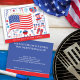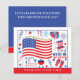 A value for money BUDGET alternative on a smaller size 4.5 x 5.6” semi-gloss 110lbs weight, which is of similar thickness to a postcard (however is not suitable to use as a postcard.). PLEASE NOTE there is ONE invite per sheet. Budget Happy 4th July Red White Blue Invitation. This fun design is bursting with lots of elements in red, white and blue Stars and Stripes with our party details on the back. Easily personalise the text.