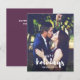Share holiday greetings with these Christmas photo cards featuring your favorite vertical or portrait oriented photo. "Happy Holidays" appears at the bottom as a text overlay in white brush modern lettered typography. Personalize with your family name or names beneath. Cards reverse color purple ( can be changed to fit you photo color scheme) and a space for a message.