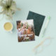 This is a budget minimal New Years card on a paper flyer. The front features a simple photo combined with “Happy New Year” in a beautiful bold and retro-inspired modern serif font. The back of the card uses an elegant green and gold pattern.