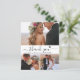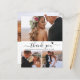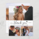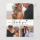 Budget, Minimalist Modern Elegant „Thank You” Script 3 Photo Collage Wedding Thank You personalized affordable low budget thin card. Stylish wedding thank you card template featuring four photo on the front and one photo on the back. ***PLEASE NOTE! *** BUDGET PAPER/FLYER IS PAPER THIN. *** UPGRADE THE PAPER FOR A THICKER PAPER. *** With the text „Thank You” in a cursive hand lettering typography script font with swash tail and little love heart in black and white. Personalize your custom name and thank you message. If you prefer to handwrite your note, just delete the sample text to make more space. Great choice for a low budget wedding.