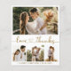 Budget, Elegant, Modern, Elegant Heart Font Script Wedding 4 Photo Collage Affordable Thank You Card in Gold and White. Stylish, minimalist wedding card template featuring four (4) grid photo collage on the front and one (1) photo on the reverse side. "Love and thanks" text in a hand lettered calligraphy cute heart font script with swash tail. Personalize with your name and thank you message. If You need help or matching item, please contact to designer!