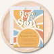 This budget sun-themed boy's baby shower invitation features "Here Comes The Son" in stylish retro typography on a colorful sunburst background.