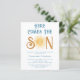 Invite family and friends to your sun-themed baby shower with this cute budget boys' baby shower invitation.
