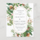 Elegant winter wedding invitation features a modern gold frame surrounded by holly and pine with white cotton flowers. Red berries add a pop of festive color. There is a winter botanical sprig on the back of the invitation. This wedding invitation is part of the Budget Holly and Pine White Floral Collection. If you need help finding coordinating items, feel free to message me. I'm Nelda and I'd love to help.