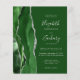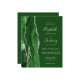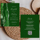 The left-hand edge of this elegant modern wedding invitation features a hunter green watercolor agate border trimmed with faux silver glitter. The customizable text combines handwriting, copperplate and italic fonts in light silver gray on a hunter green background. The reverse side provides space for wedding details on a solid green background, along with a QR code guests can scan to visit your website and RSVP.