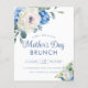 Elegant Hydrangea Rose Floral Mother's Day Brunch Invitation: delicate watercolor blue hydrangeas and white roses and peonies frame the edges of this spring time card. Easily customize to change the year, names, fonts, etc.Please contact us at cedarandstring@gmail.com if you need assistance with the design or matching products.