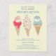 New for Summer 2024. Our Ice Cream, You Scream We All Scream Happy 50th Birthday! Followed by three retro watercolor color ice cream cones with patriotic red, white and blue ice cream and sprinkles.