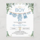 Whether you're hosting a baby shower with a modern flair or embracing a more traditional theme, our invitation strikes the perfect balance. The dusty blue hue adds a sense of tranquility and calmness, while the botanical greenery brings a natural and refreshing touch to the overall composition.