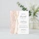 The left-hand edge of this elegant modern wedding invitation features a watercolor agate border in shades of ivory and blush, trimmed with faux gold glitter. The customizable text combines handwriting, copperplate and italic fonts in charcoal gray on a white background. The reverse side features a matching ivory and gold agate design. NOTE: Envelopes are not automatically included with these budget invitations, so please remember to choose the "white envelopes" option!