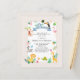 Cute jungle safari animals themed birthday invitation featuring tropical animals, an exotic bird, and other cute party elements. Send out the invites and celebrate the first birthday of the wild one with friends and family.