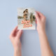A wedding save the date with a custom photo and peach colored retro style typography is a unique and stylish way to announce your upcoming nuptials to your friends and family. The custom photo is a special touch that adds a personal and sentimental element to the design, while the peach vintage style font adds a touch of retro and whimsy. This design is sure to impress and get everyone excited for your big day.