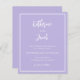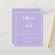 Introducing our Lavender Modern Wedding Invitation, a stunning representation of refined elegance and natural charm. Symbolizing purity and devotion, lavender sets the perfect tone for a wedding filled with love, joy, and hope. Its gentle hue carries an air of sophistication and grace, making it an exquisite choice for couples seeking a timeless and refined aesthetic.